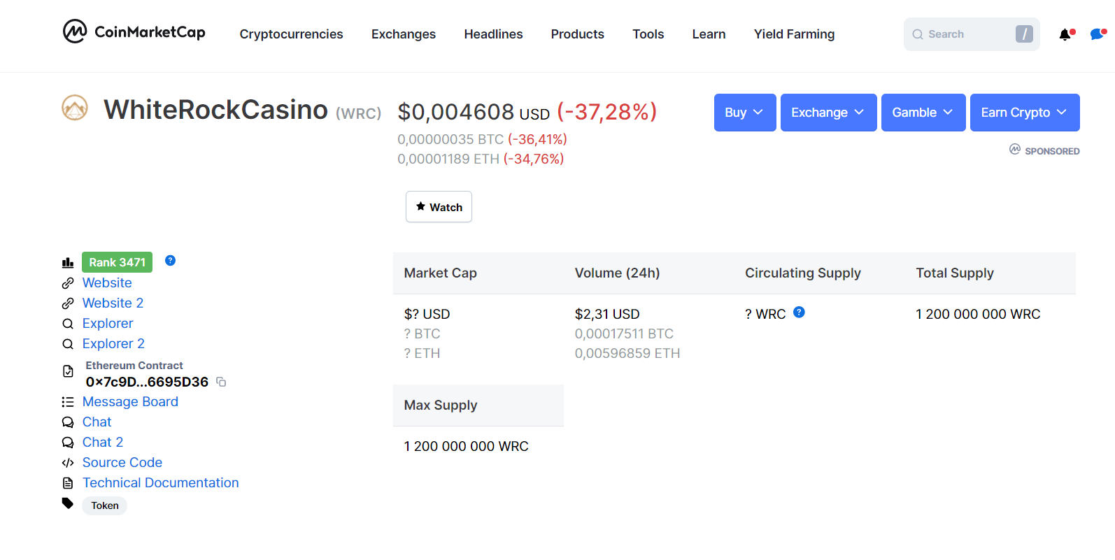 ◉https://coinmarketcap.com/currencies/whiterockcasino/