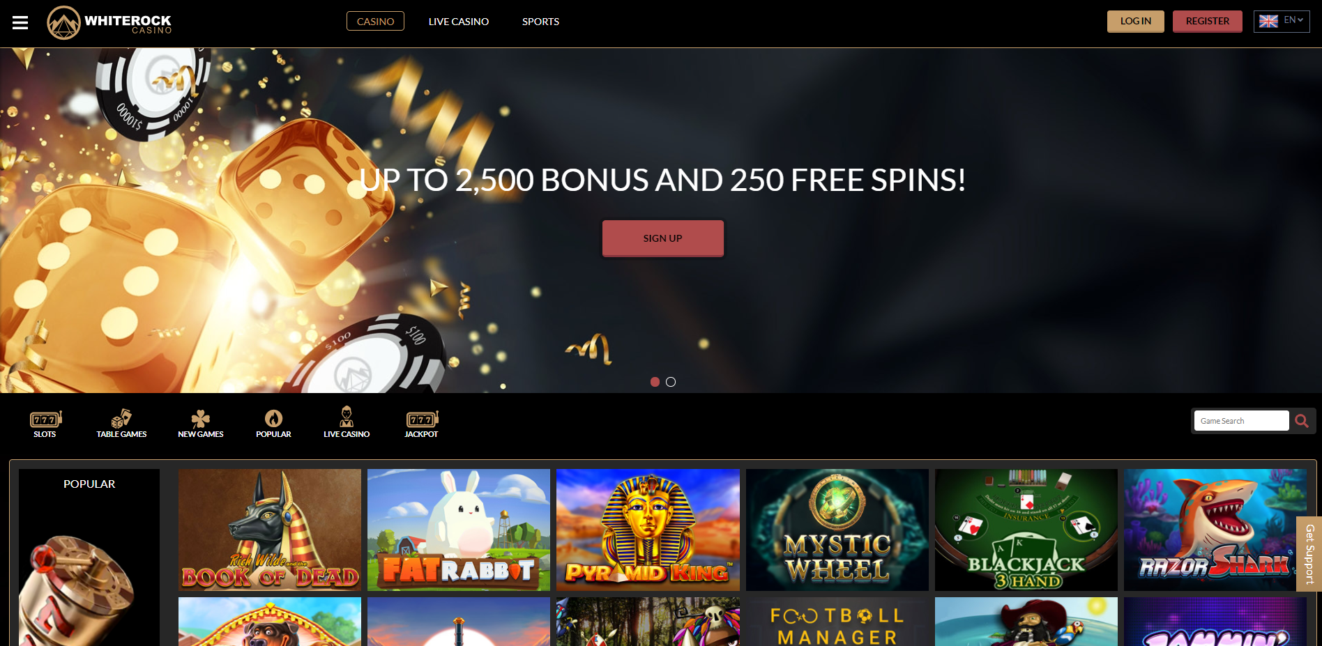 И несмотря на то, что платформа Whiterock Casino запустилась относительно недавно – 1го августа 2020 года – на данный момент на ней уже имеется большое количество различных игр – 6000 слотов, более 120ти живых игр с реальными дилерами, а также почти 25 000 спортивных событий, на которые пользователи могут делать ставки. Причем помимо самых популярных спортивных событий, вроде Europa Champions Legue, NFL, NBA, NHL, MMA, на Whiterock Casino можно также делать ставки и на менее популярные виды спорта, такие как крикет, боулинг и гандбол, и даже делать ставки на исход политических событий.