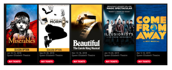 I suppose I probably should have started with this, but oh well, I’ll add it in quickly here. If you signed up to be an eClub like I mentioned above you’ll probably receive a Newsletter announcing the new seasons. That’s when you’ll know when shows are occurring and can, therefore, plan accordingly. You can also usually find out this information by going to either BroadwayAcrossCanada.ca or BroadwayAcrossAmerica.com.