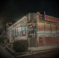 She woke up the next morning, her stomach rumbling as she hadn't eaten anything the day before. She looked out of the window and was pleased to see a retro looking diner across the street. After the usual morning routine she left the room and walked across the street. As she approached the diner, she noticed a “Help Wanted” sign in the window and had an idea.