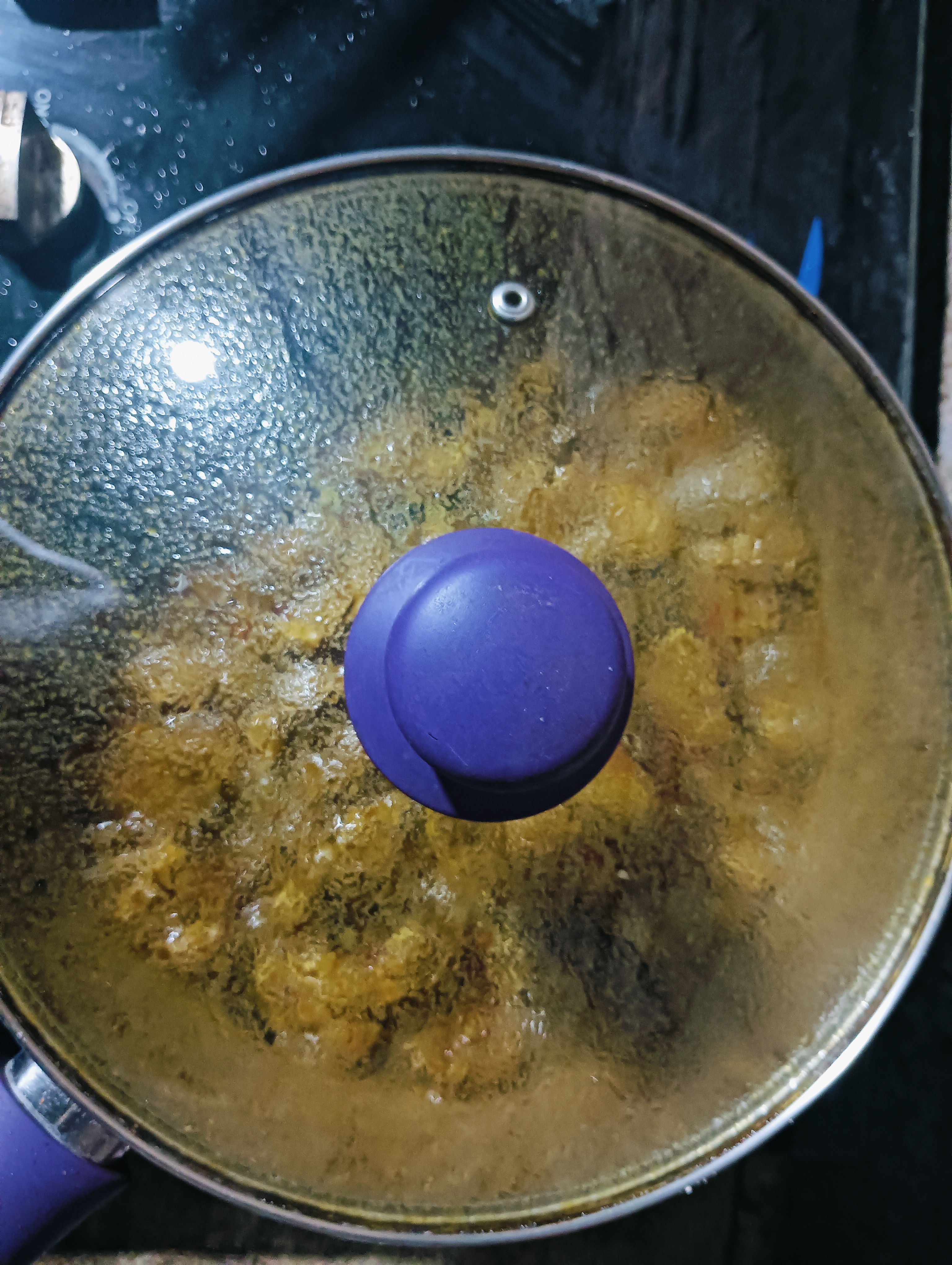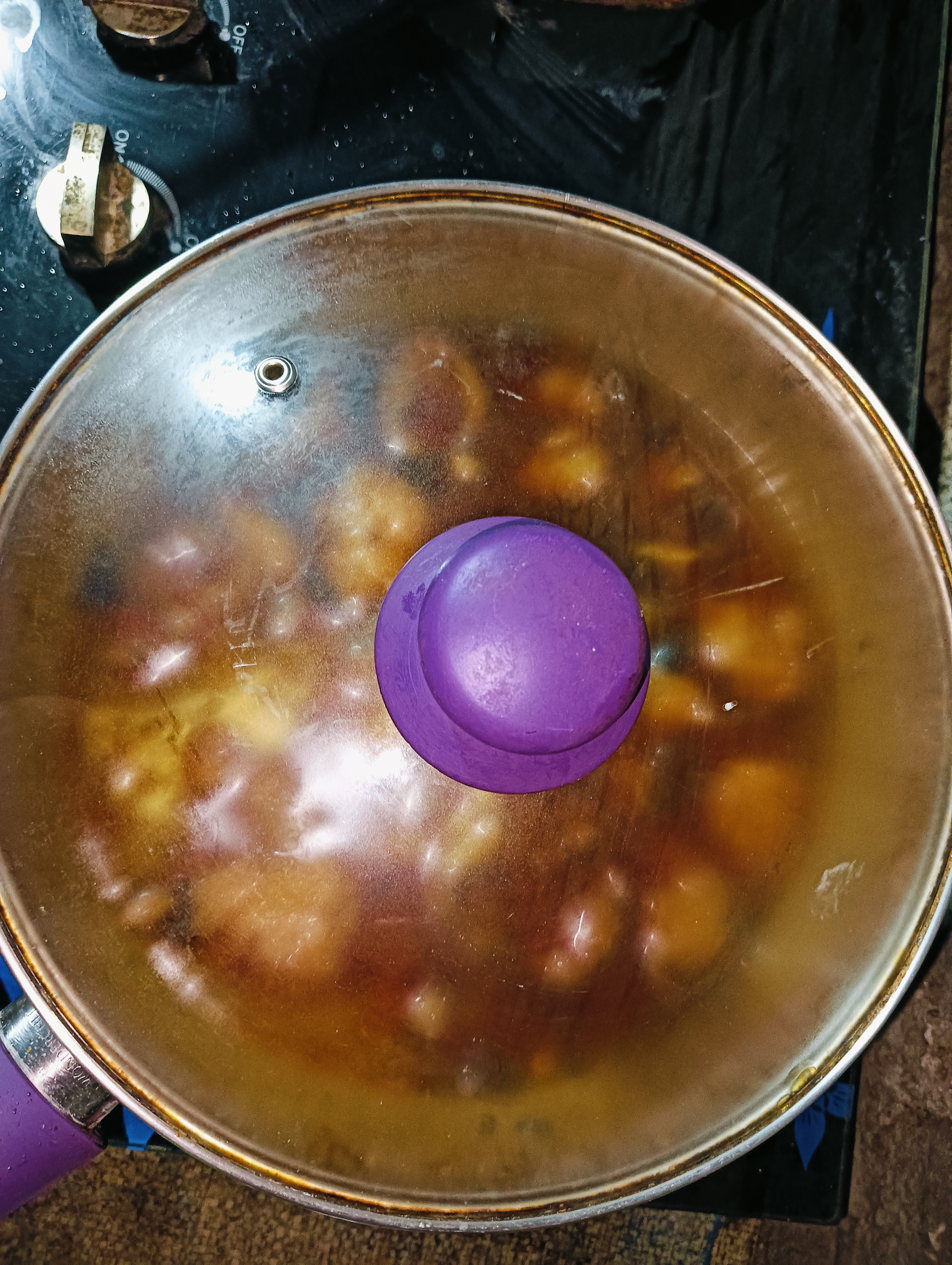 ভালোভাবে একে অপরের সঙ্গে মিশে যাওয়ার পরে এর ভিতর পরিমাণ মতন জল দিয়ে ঢাকনা দিয়ে ১০ মিনিটের জন্য রেখে দিব।