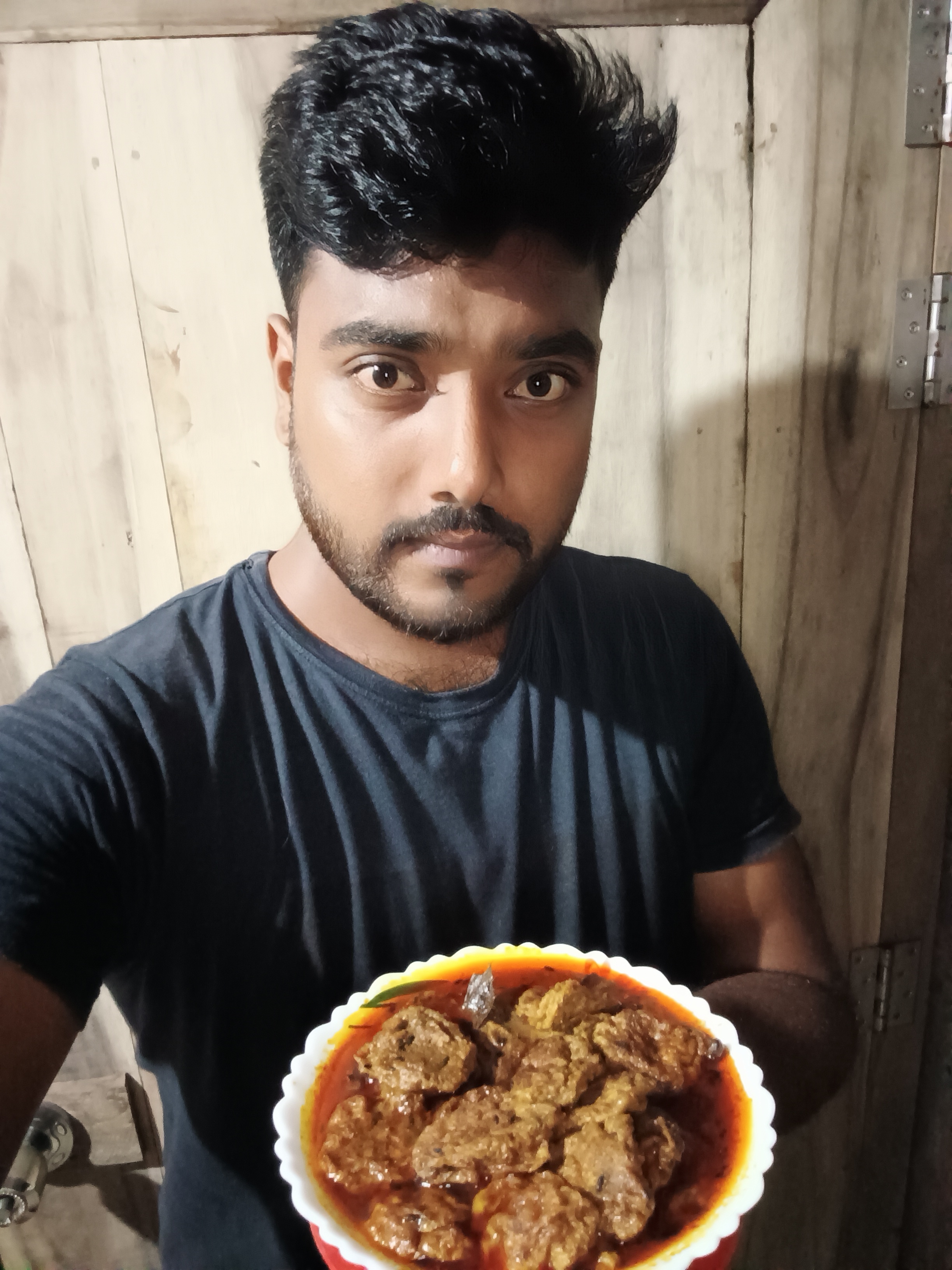 দুই মিনিট পর ঢাকনা উঠিয়ে হালকা নেড়েচেড়ে পরিবেশন করার জন্য একটি পাত্রে নামিয়ে নিলাম এবং কিছু ফটোগ্রাফি করলাম আর নিজের সঙ্গে একটি সেলফি নিলাম।