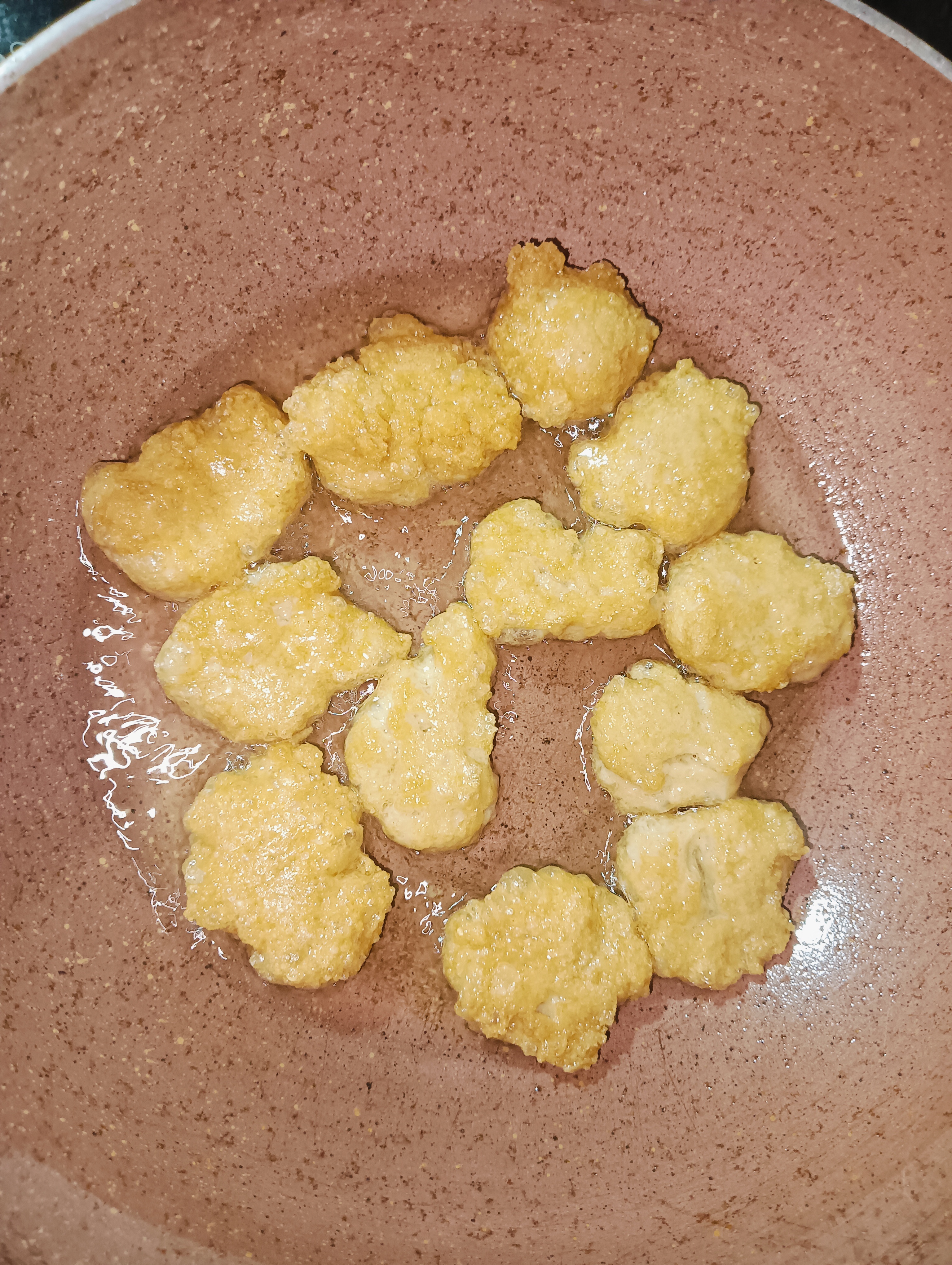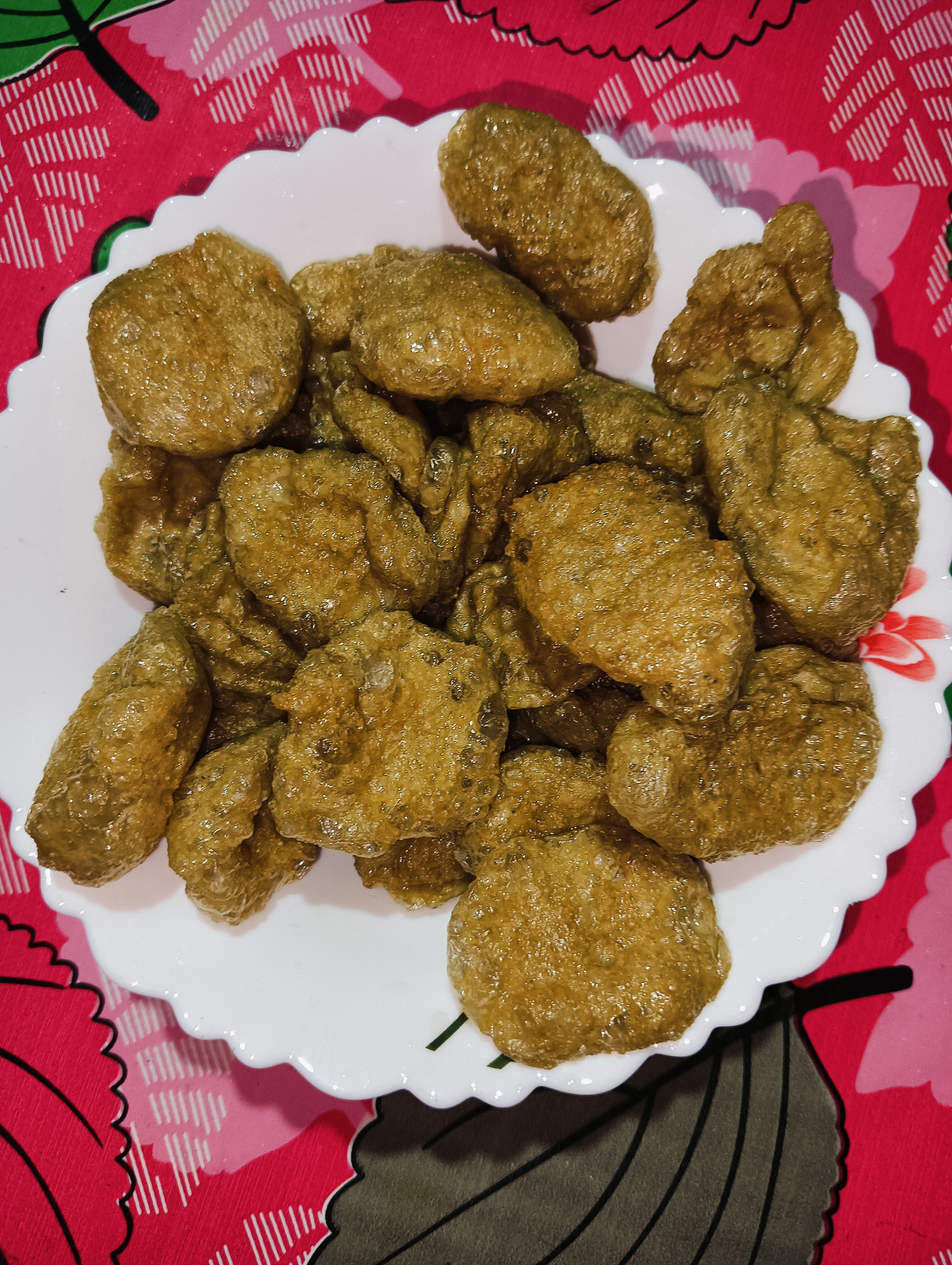 এরপর চুলার উপর কড়াই দিয়ে তাতে তেল দিয়ে ।তেল গরম হয়ে গেলে ময়দা থেকে যে চর্বিটা আমরা বের করেছি সেটি টুকরো টুকরো করে ভেজে নিব। গোল্ডেন কালার করে ভেজে একটি পাত্রে উঠিয়ে নিব।