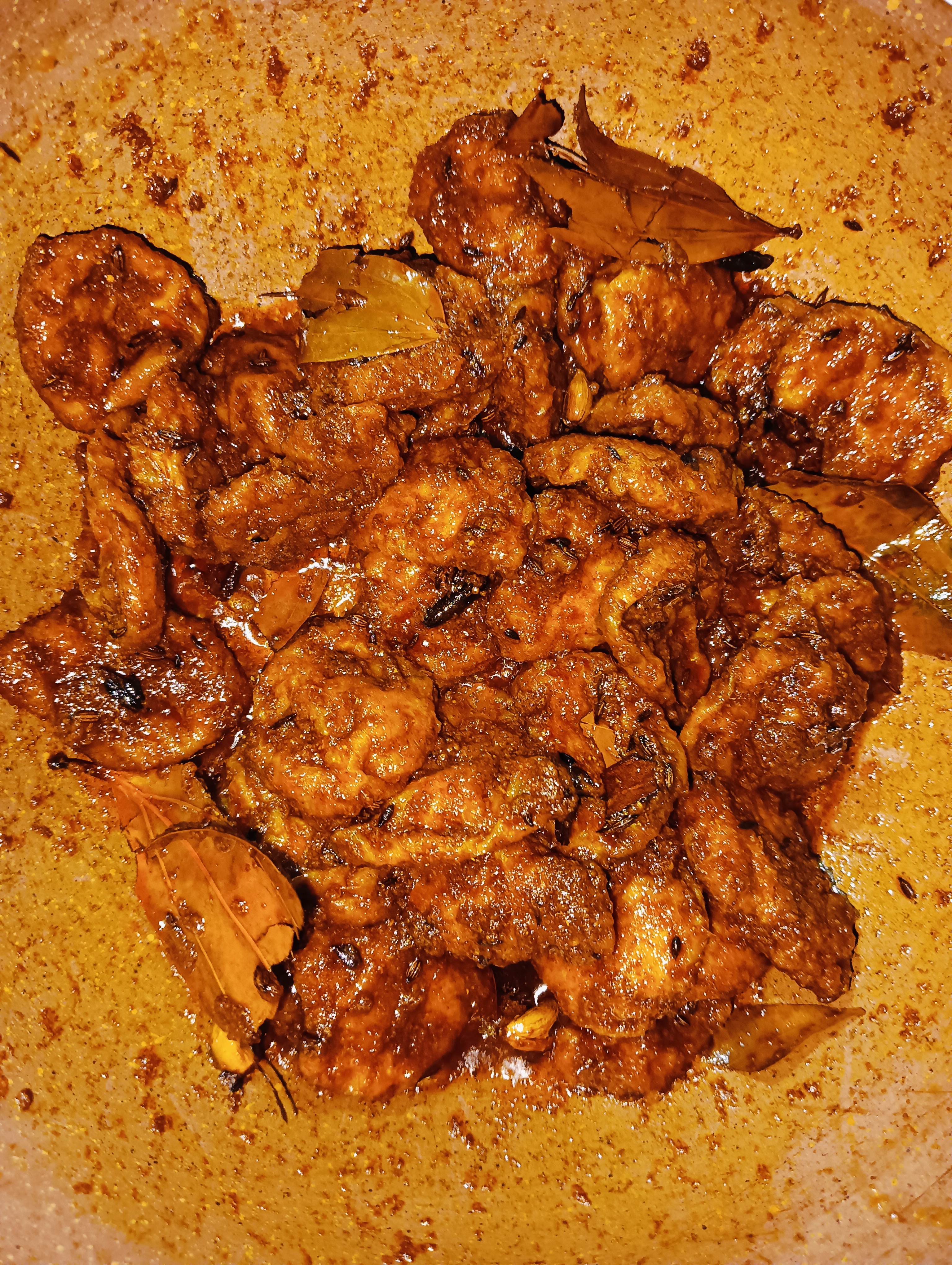মশলা থেকে তেল ছেড়ে দিলে এর ভিতর দিয়ে দিবো ভাজি করা চর্বি গুলো। এগুলো দিয়ে একটু নেড়েচেড়ে দিবো যাতে সবগুলো উপাদান ভালোভাবে একে অপরের সঙ্গে মিশে যেতে পারে।