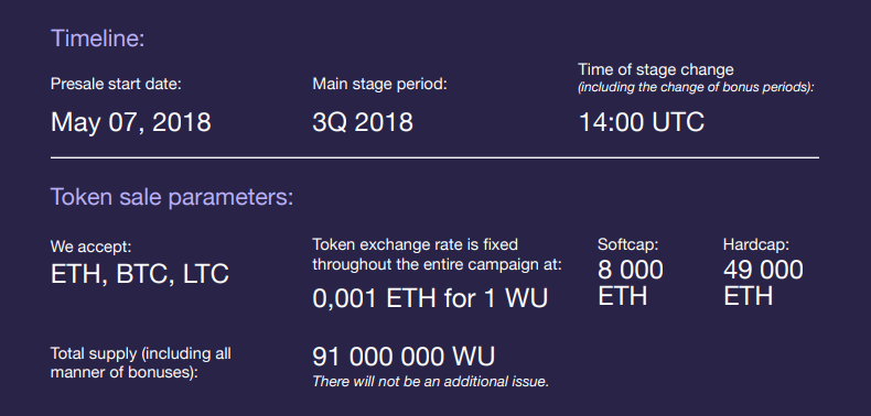 • to unify all the bonuses available on the WU token, and use them in the system, exchange them with banknotes, or exchange them on the exchange
