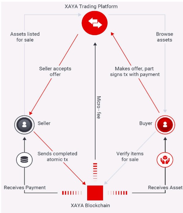 Checking on the chart below, the trading of items is fully explained, transfer of both sold items and payment on CHI are done on a single transaction by both user and signatures are taken down in order to prevent fraud.