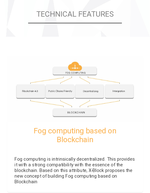 Fog computing is intrinsically decentralized. This provides it with a strong compatibility with the essence of the blockchain. Based on this attribute, X-Block proposes the new concept of building Fog computing based on Blockchain