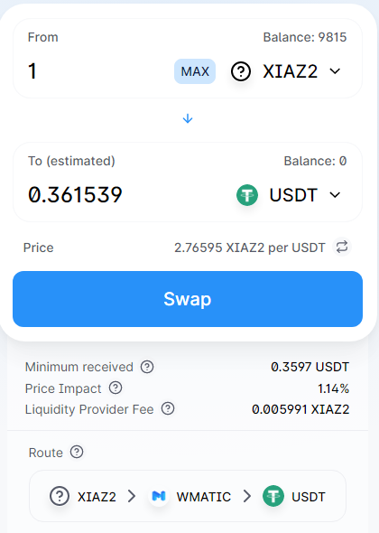 Welcome to XIAZ2 on Polygon Networkxiaz (25)in #xiaz • 5 years ago We are working again to lift XIAZ but now on Polygon Network Visit Xiaz.tech Contract for XIAZ2: 0xef3af9dfea19dd9892ae6c57be973fb390991530 Soon we will convert 100XIAZ to 100XIAZ2 #token #matic #polygon