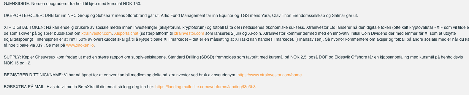 Norway's biggest forum for investors, Xtrainvestor.com, with 10.000 members, is going to launch its own token soon - the XI.