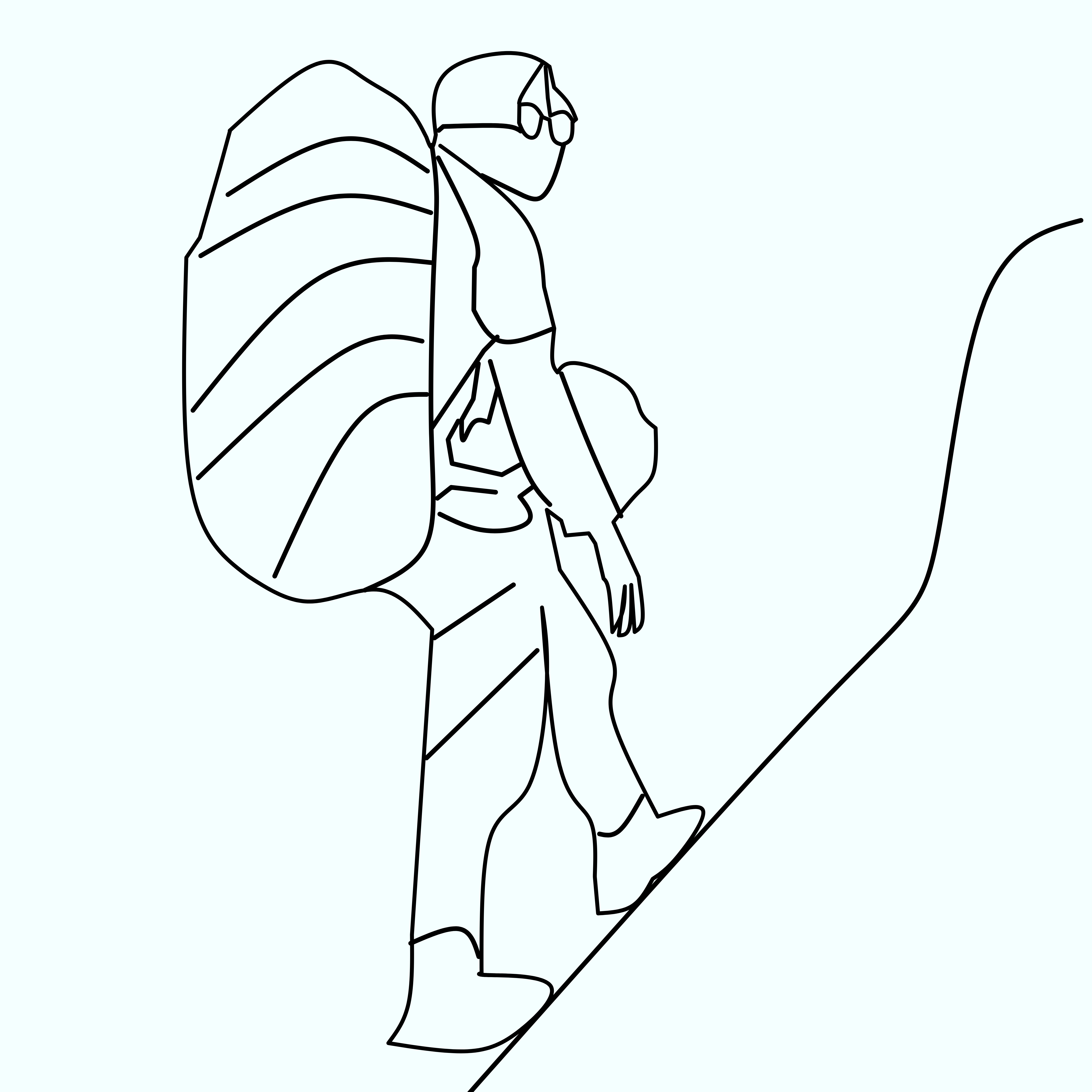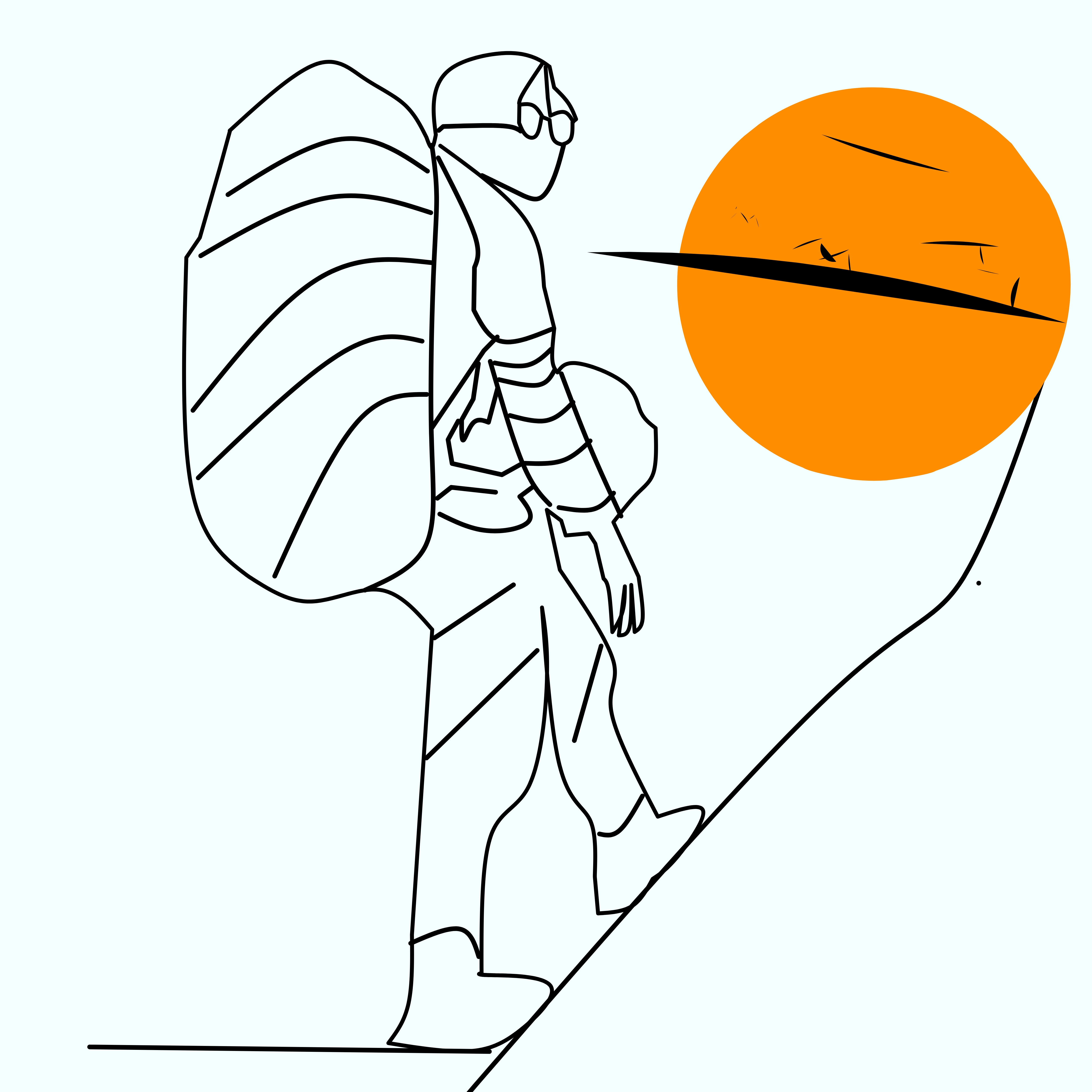 This picture tells the story of a woman climber looking for identity above the peak of the Himalayas, but this woman lost hope because the climber experienced a physical drop, and finally stopped in the middle of the road while looking at the sun that shines more