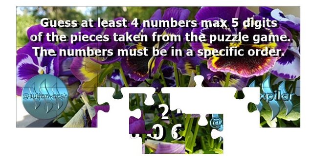 #xpilarcontest Guess at least 4 numbers max 5 digits of the pieces taken from the puzzle game. The numbers must be in a specific order. You can win 10 Steem