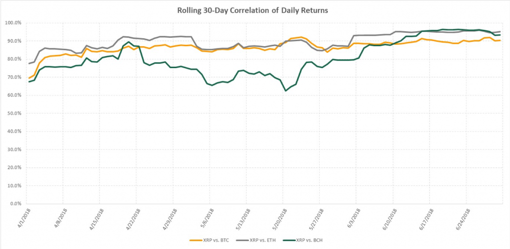 The tight correlation is indicative of a market that is still in its infancy. Traders have yet to distinguish among the intrinsic values of the best known digital assets. As the industry matures and decides what it deems most useful and valuable, we should expect to see more separation.
