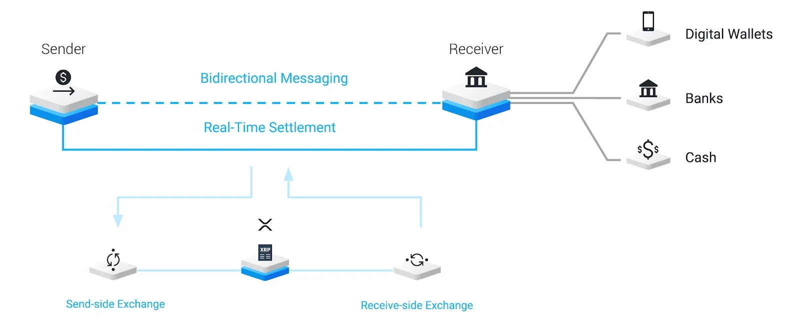 The concept of how XRP saves money via its use as a bridge asset is described using a concept diagram: