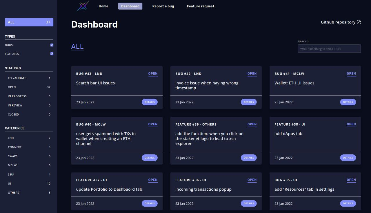 Anh ấy đã thiết lập một trang web tuyệt vời, nơi cộng đồng có thể dễ dàng báo cáo và theo dõi các vấn đề và yêu cầu liên quan đến DEX trong thời gian thực.