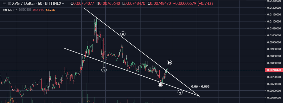 So we saw XVG breach the descending triangle it is in, although the daily is still looking like it is about to pop any time now, the shorter time frames are suggesting a minor dip.
