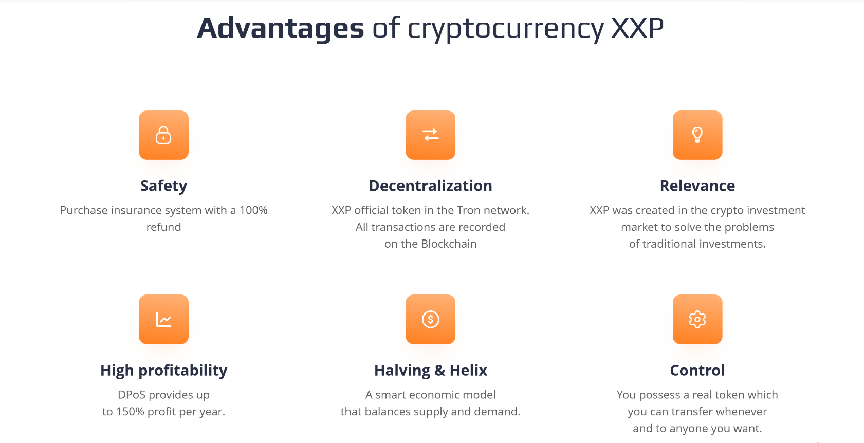 Holders of the XXP token will receive priority for investment, as well as special conditions and discounts, which will make investments with the XXP token more profitable, thereby providing it with natural liquidity.