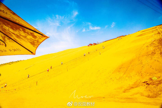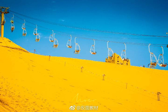 From the green woods, I suddenly saw the huge sand dunes. The people who flew in the volley, leisurely sitting in the sightseeing car slowly swaying from the sky, and laughing with the couple holding hands. Running around on the sand dunes, the happiest thing is the children. Just sit down and play for a long time.