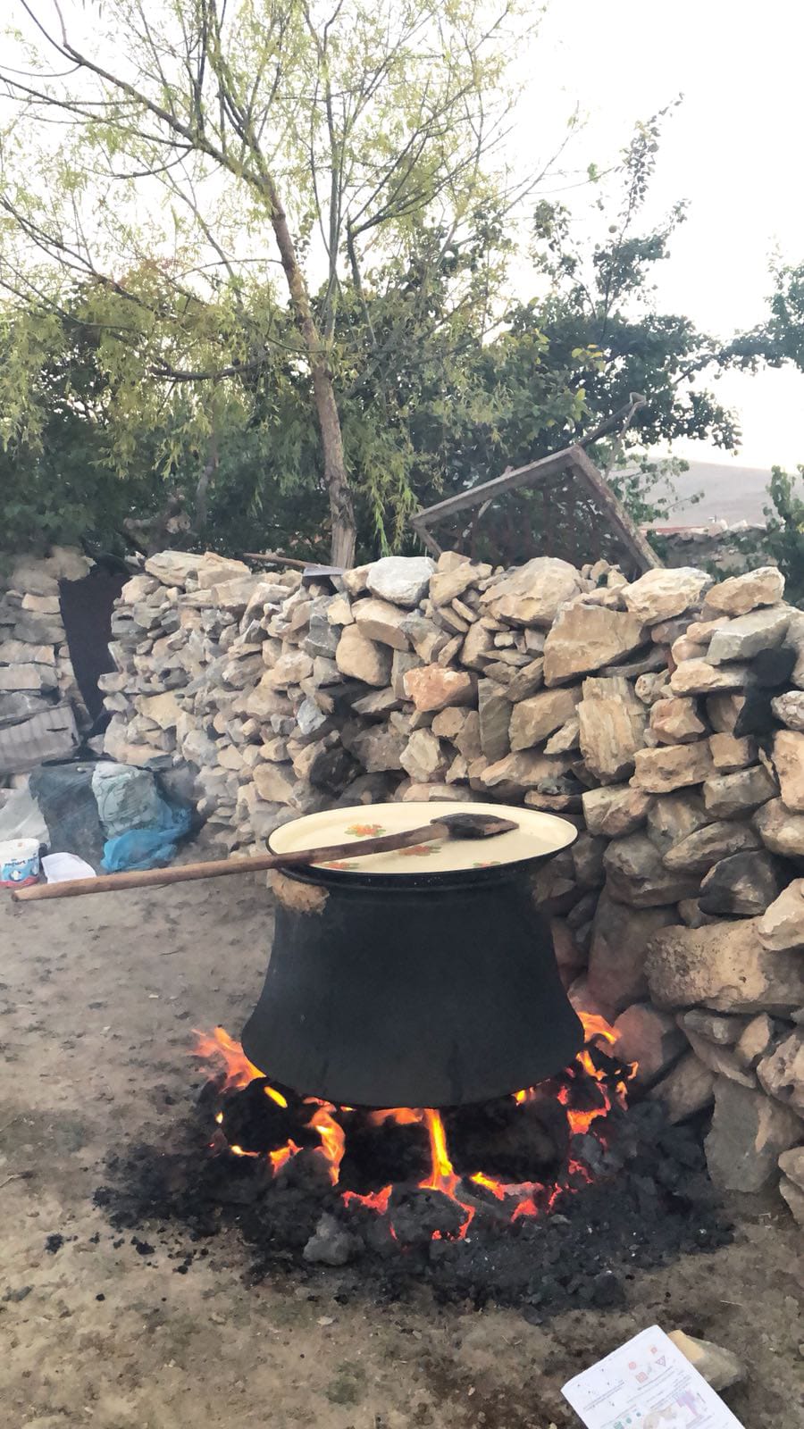 Bu yemeğin adı toyga. Evet biraz değişik bir adı var. Yani içinde pişen yemeğin değil galiba bu şekilde kazanda pişen tüm yemeklere toyga diyorlar. Ben de tam bilmiyorum.