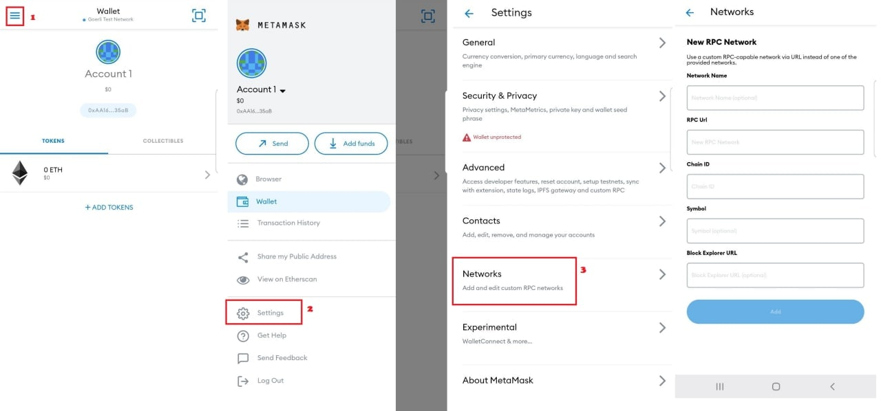 [모바일]바이낸스 스마트 체인 기반 디파이(DeFi)서비스를 이용하기 위한 모바일 메타마스크 지갑 설정 방법yieldnyan (54)in #yieldnyan • 5 years ago (edited) 메타마스크를 이용해 휴대폰으로 바이낸스 스마트 체인 설정하시는 방법입니다. 1. 휴대폰으로 메타마스크 지갑을 열고 왼쪽 상단에 3줄무늬를 클릭하세요 2. 두번쨰 보이는 화면의 Setting을 클릭하세요. 3. 세번째 보이는 화면의 Network를 클릭하세요. 4. BSC체인을 설정할 수 있는 화면에서 네트워크 이름 : Binance Smart Chain 새 RPC URL : https://bsc-dataseed.binance.org/ 체인 ID : 56 통화 기호 (선택 사항) : BNB 블록 탐색기 URL(선택 사항) : https://bscscan.com #kr #zzan #sct #steem #yield #defi