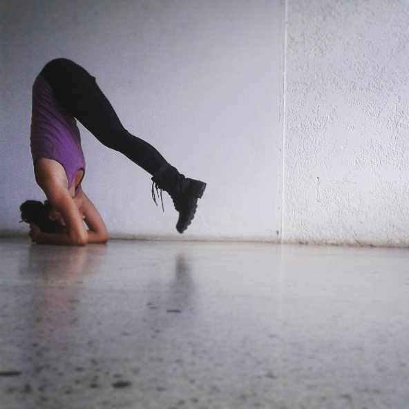 Then it was my turn. I was scared, yes, but I was obviously going to try. I prepared my posture, rested the crown of my head on the ground, and raised one leg up. My teacher held me body lightly to keep me in balance and then told be to raise the other leg, while she kept holding me all the time. The moment I was completely upside down my mind went nuts. Panic was coming for me, I could feel it. I started to beg to my teacher "please don't let go, please, please!". And this was a desperate plea, I honestly thought that she was holding me back from death, and if she ever let go I would definitely snap my neck and die.