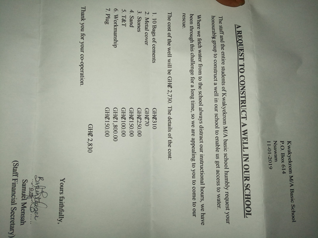 The main objective of this post is to help raise funds for the construction of a borehole at Kwakyekrom M/A Basic School who for so long are facing lack of portable clean water supply.