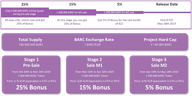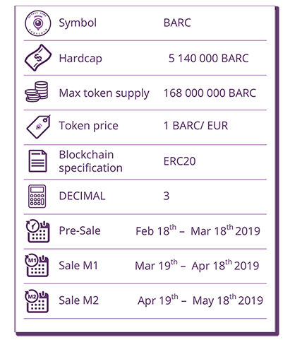 February/May 2019: ICO with the mean to raise 5 140 000 BARC