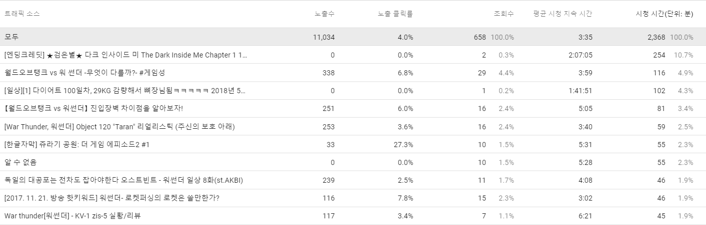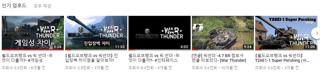 아직까진 워썬더와 월드오브탱크영상이 시청률이 제일 좋습니다.