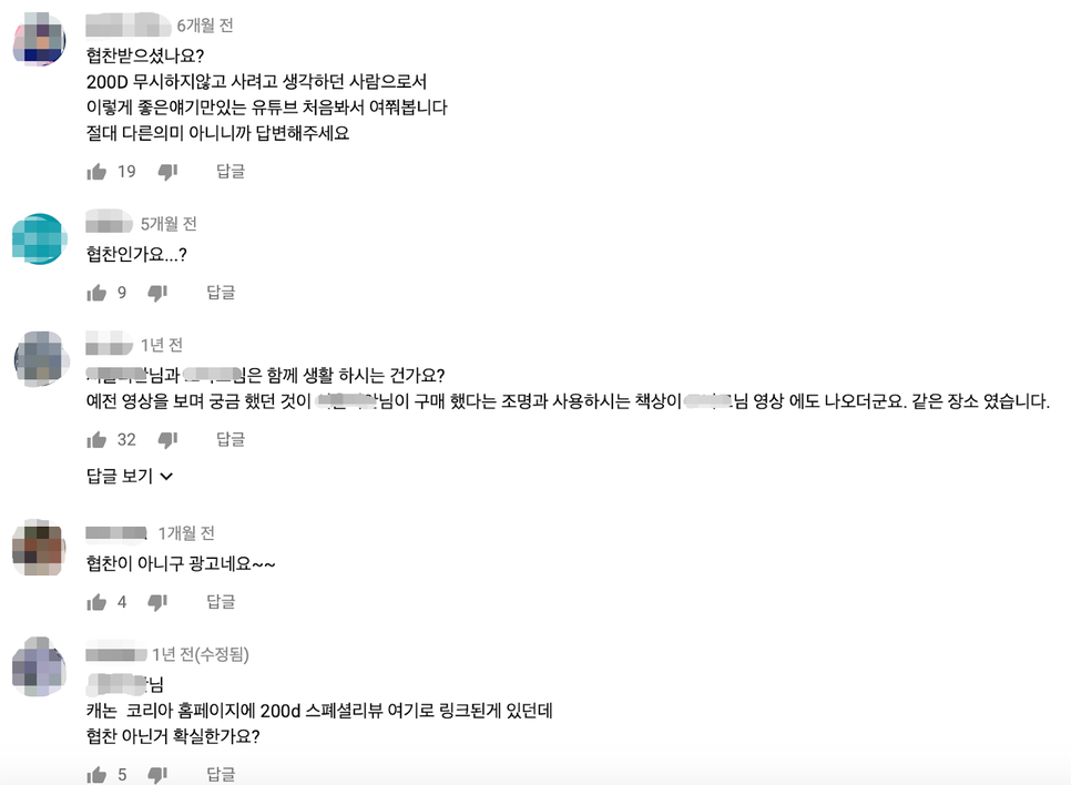 한때 바이럴 마케팅 논란을 일으킨 한 유튜브의 댓글