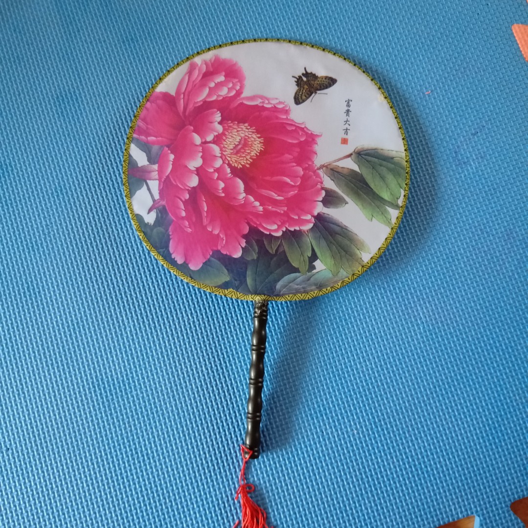 老板很会说话,说汉服一定要配扇子,才显得有韵味,团扇10元一把批发价卖给我。,我心想哪有不赚钱的呀。