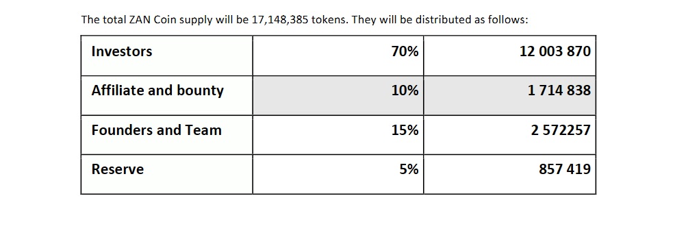 ZAN Coin Distribution