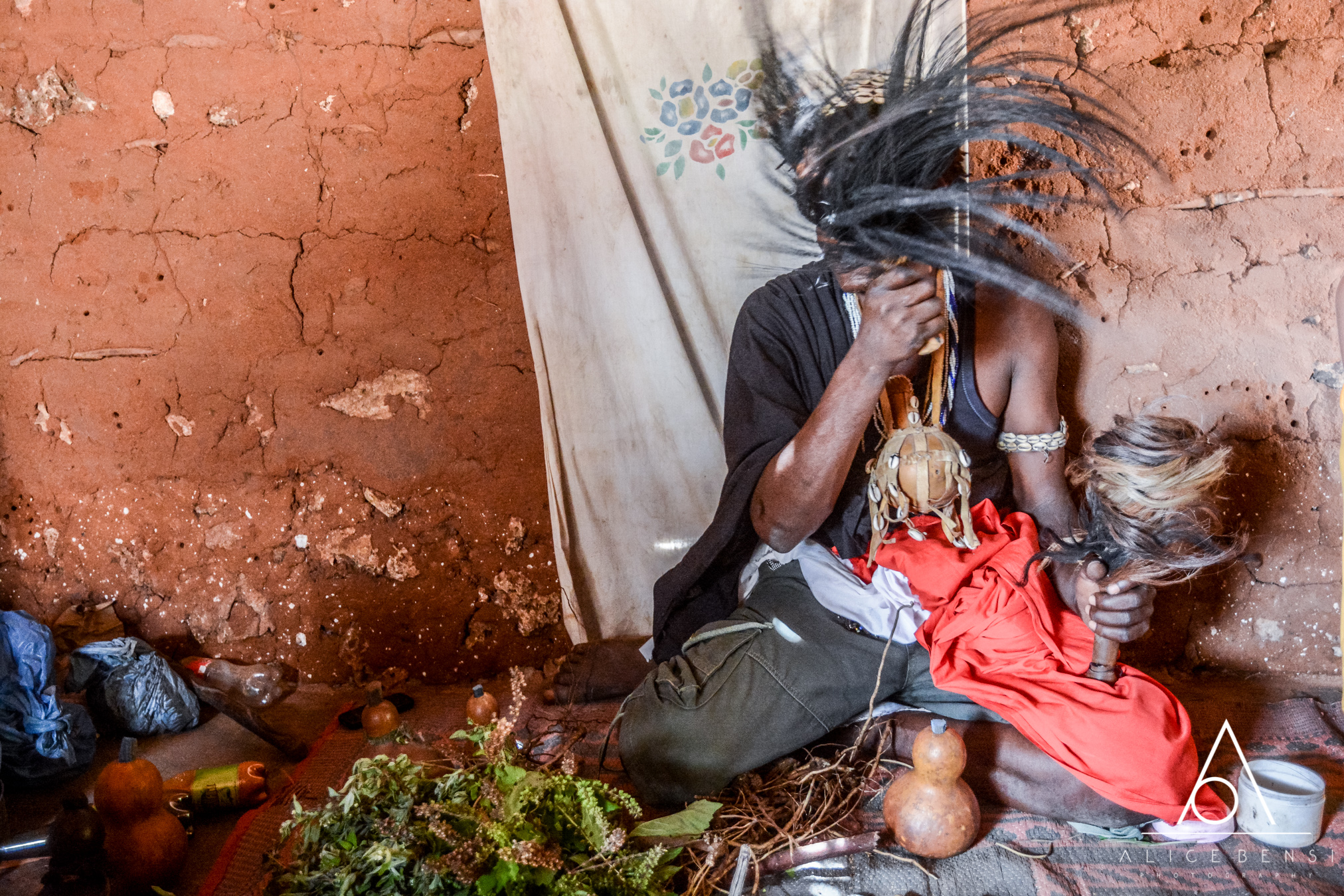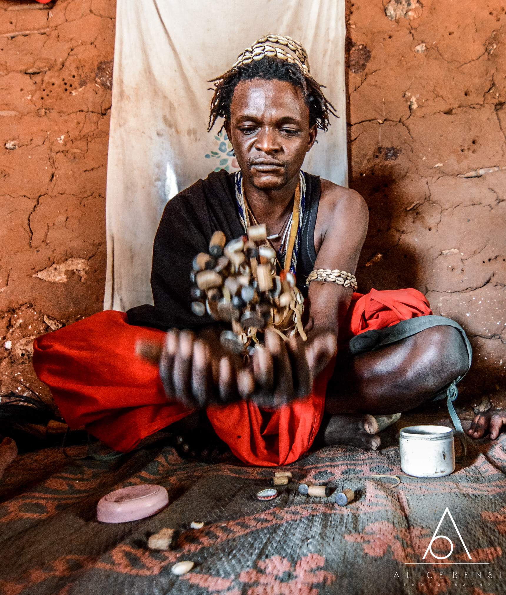 In the process of healing a patient, the Mganga will often wear fabrics of different colors – either white or red or black, the colors of the spirits.