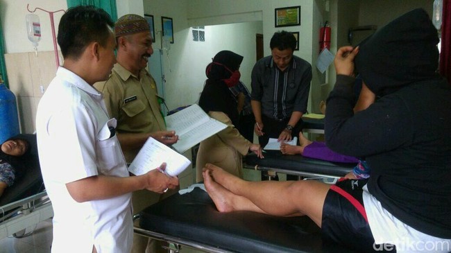 Puluhan warga Kab. Malangbong, Kabupaten Garut, Jawa Barat, diluncurake menyang Puskesmas sawise keracunan makanan sing diwenehake ing pesta.