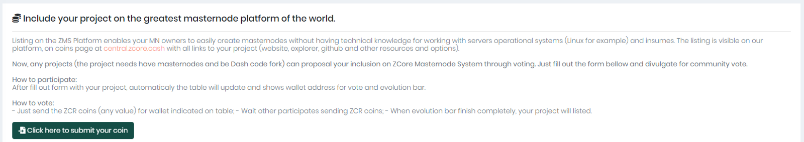 Apply for listing on ZCore Masternodes System