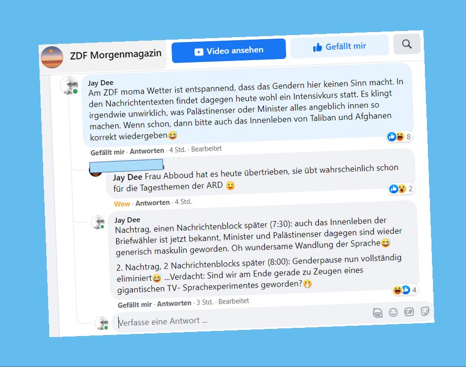 Lebendige Sprachedorfreporter (52)in #zdf • 5 years ago An jenem Morgen war es mir endlich gelungen, vermittels eines kurzen Facebook-Eintrags direkten Einfluss auf das Nachrichtengeschehen im "ZDF Morgenmagazin" zu nehmen. #steemexclusive #deutsch #facebook