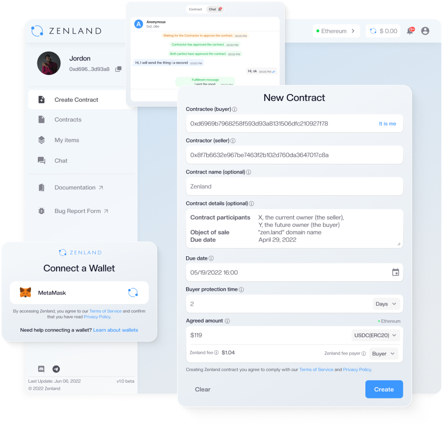 Through its smart contract platform with built-in templates, Zenland empowers non-technical people to exist in a fair and just world. Our platform is home to freelancers, OTC participants, and anyone looking to safely buy or sell services or goods with the guarantee of the formal agreement but with no middleman involved.