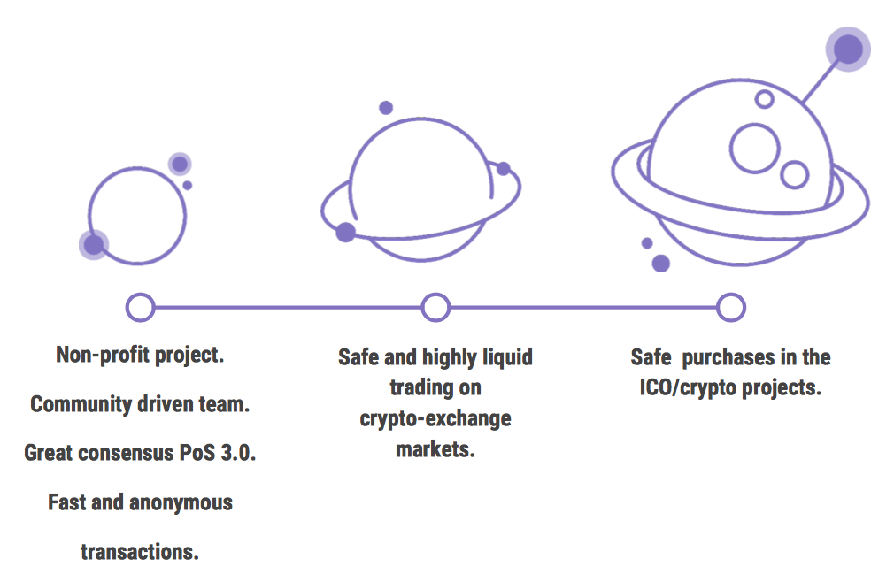 With this system, the main problems of high-risk ICO primary coin market, expensive cryptocurrency transactions, weak liquidity on the selected exchanges and theft of the user capital on these exchanges through hacking will be avoid.