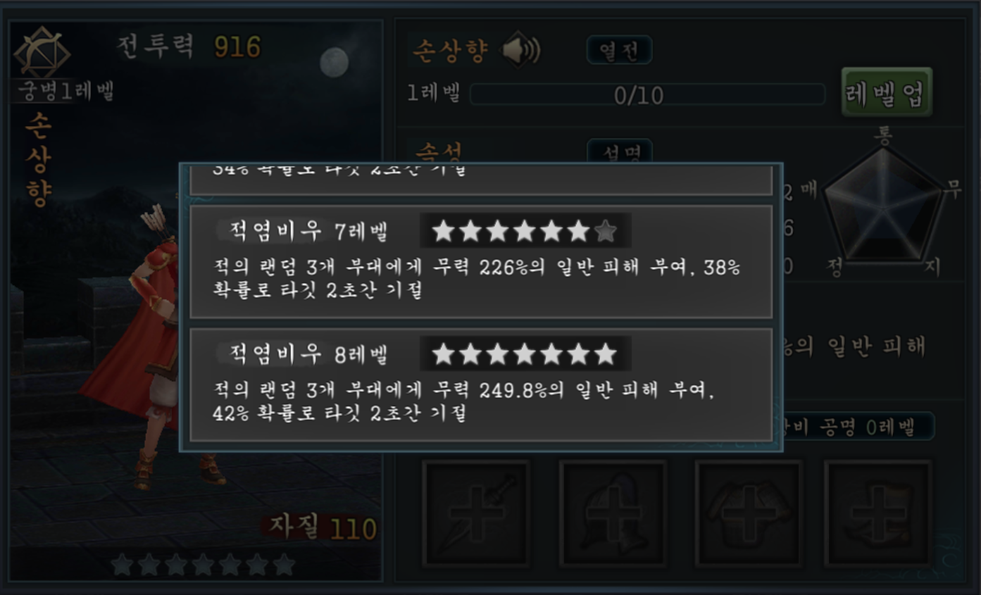 손상향 스킬 1타겟 기절 확률=0.42 (최대3타겟)
