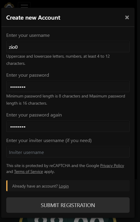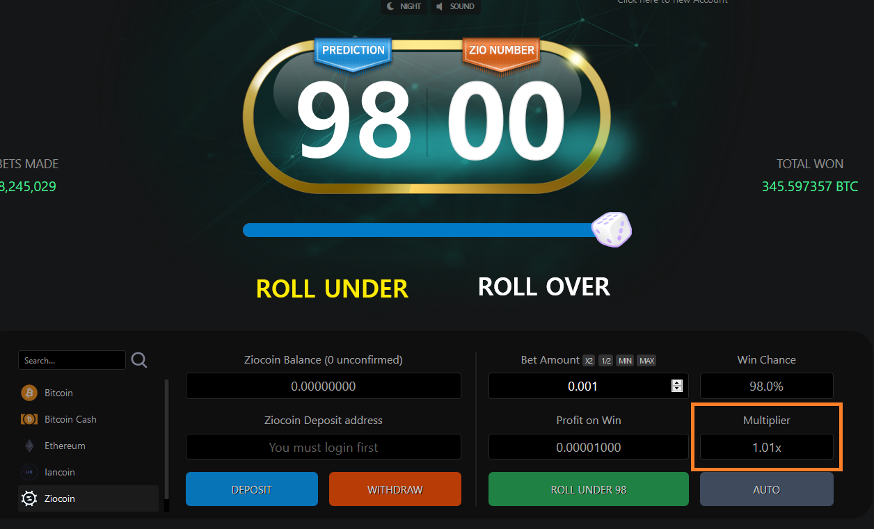 ziocasino.io에 접속하면 다음과 같은 화면이 뜹니다.