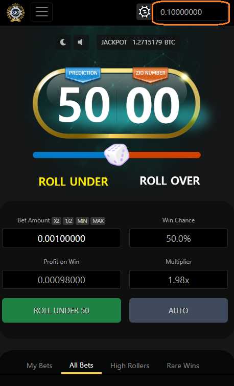상단의 잭팟 금액은 다이스를 즐기다보면