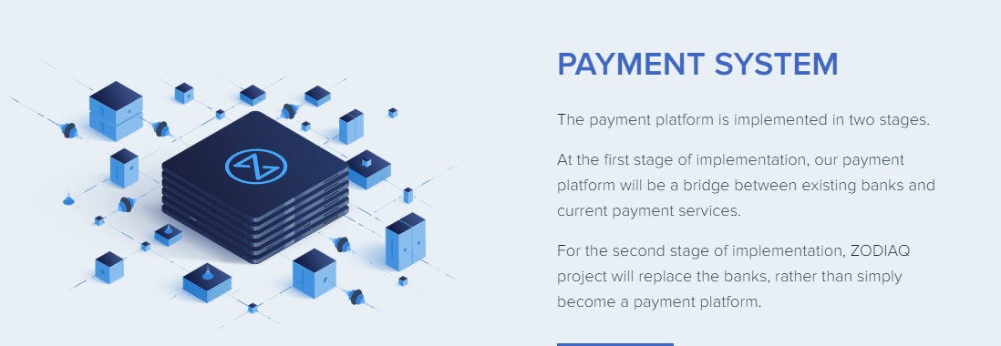 Zodiaq is a crypto-fiat platform for the implementation of settlement, guarantee and clearing operations. It includes a bank, an exchange, a hedge fund, and a payment operator (PSD2 compliant).The strong side is that our bank have a licence for operations both in fiat and crypto currencies, and a banking software that is ready and operational.