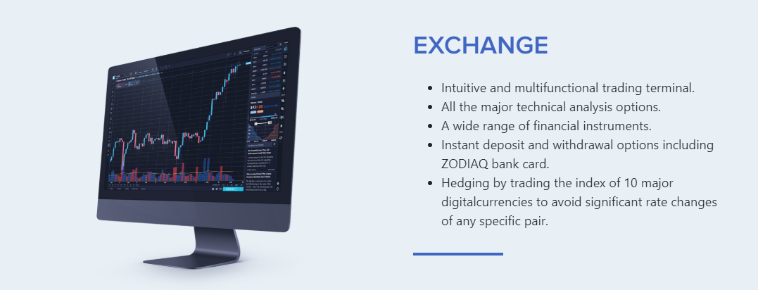 Zodiaq currently has its own bank, having a license for account opening and providing any operations (account management, performing transactions) both in crypto and in fiat currencies, as well as its own cryptocurrency exchange.