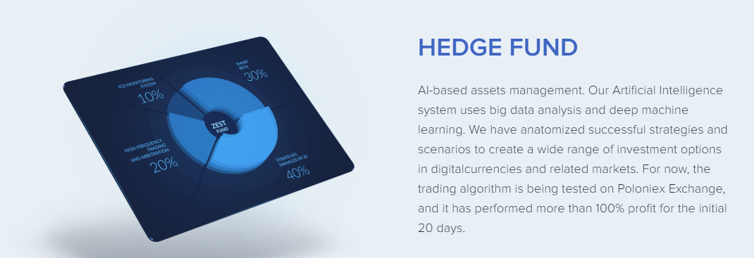 Marketplace of investment products.For institutional investors: The shares of the trust allocated to a separate legal unit have a direct correlation with the value of the assets of the trust and will be traded on the traditional securities markets (NYSE, LSE, SSE).Maintenance of liquidity of a token due to the provision of real and digital assets Zodiaq Economic Stability Trust (ZEST).