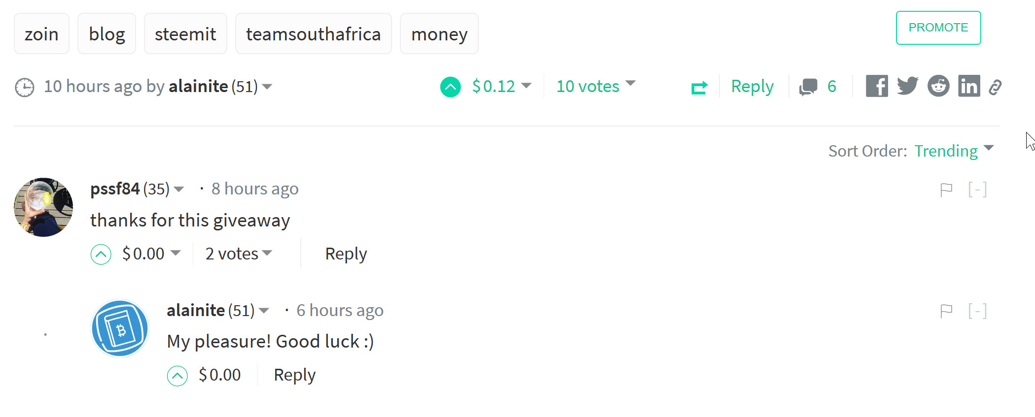 - Upvote, Resteem and Comment on the Zoin Giveaway post: https://steemit.com/zoin/@alainite/2000-zoin-zoi-giveaway-learntobitcoin-io