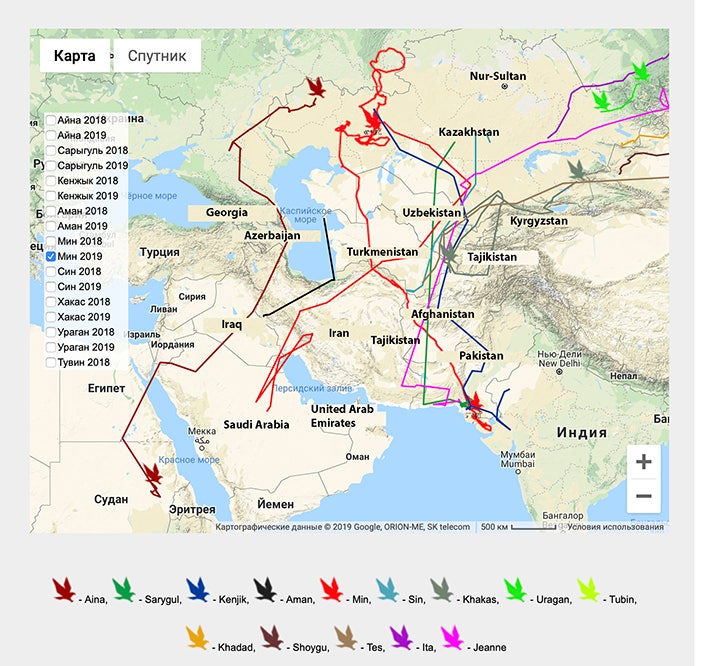 'MIN'을 비롯한 초원수리 이동 데이터 모습. 출처: 시베리안 타임스 인용