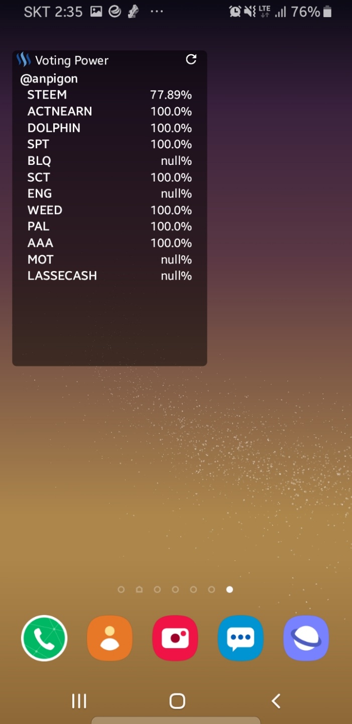 | STEEM/SCT 보팅파워(VP) 안드로이드 위젯 #1 |