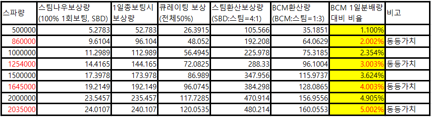 관련 파라미터값은 @bcm계정의 스파 증가대비해서 18% ROI를 보장하기 위해 대략 5번 정도의 조정을 통해 최종값까지 변경될 예정입니다.