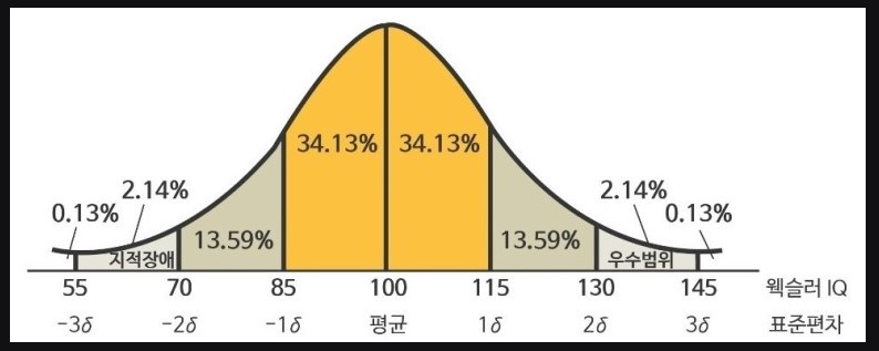 인간의 지능 지수를 평균 100이라고 가정했을 때, 정규분포를 통해서 나눈 것입니다.