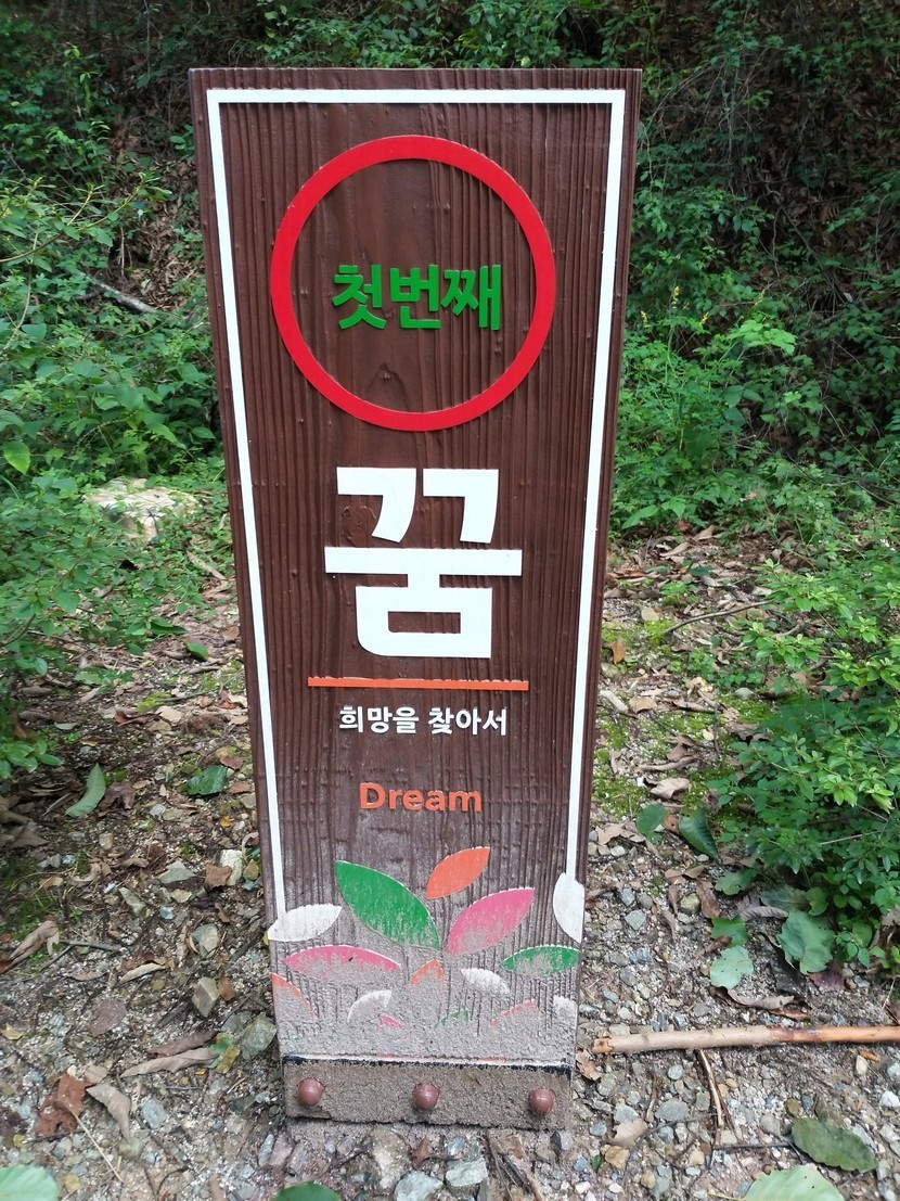 일행 모두가 행복해하는 그런 즐거움이 있었고 오르는 길가에 쌍기억 (ㄲ)을 가지고 희망적인 말들을 지어 위 사진처럼 적당한 거리를 두고 설치를 해 놓아 오르내리며 생각할 수 있는 꺼리를 제공하기도 하니 더욱 좋았다.