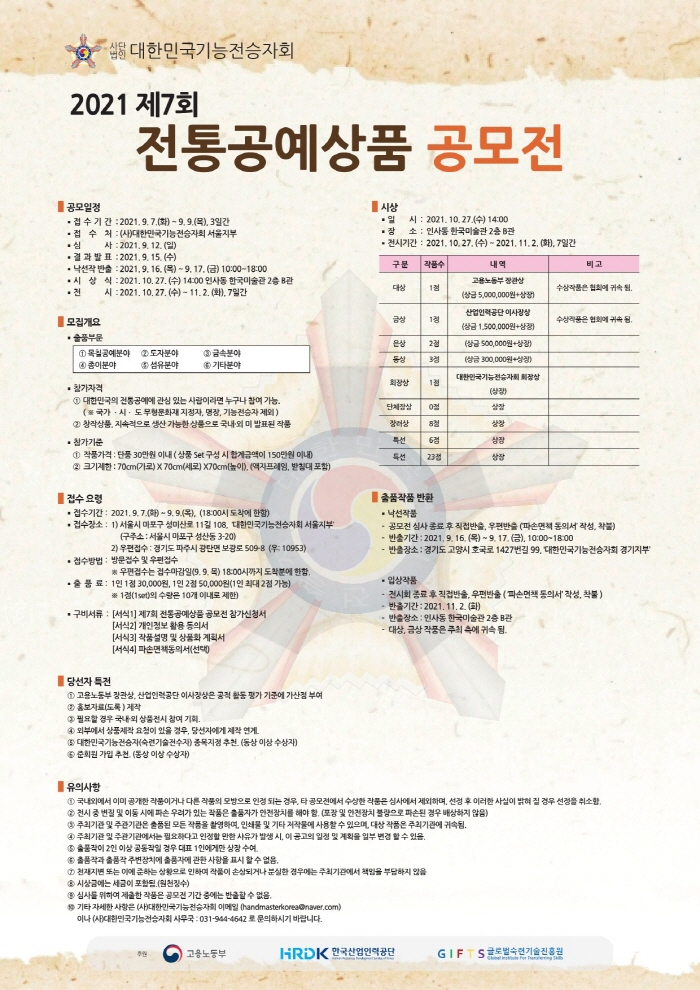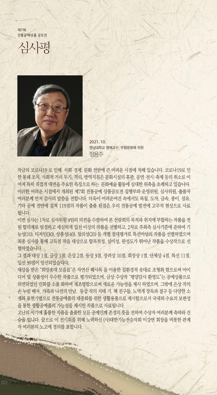 제7회 대한민국 전통공예상품 공모전 최고의 영예인 대상을 수상한 친구를 축하하며 고용노동부 장관의 상장까지 수여된다니 이 친구 정말 큰일을 해냈고 축하받을 일이며 본인은 얼마나 좋겠습니까.