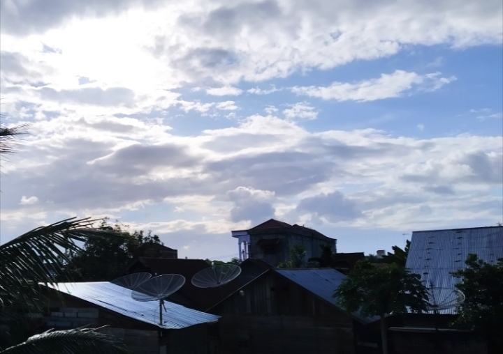 Awan yang indah dan juga panorama alam saat matahari terbenam yang mulai terpancar di sore hari ini